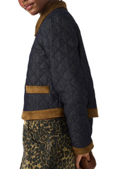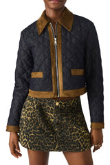 Elevate your outerwear game with the Agatha Quilted Denim Jacket by Steve Madden. This dark-wash denim piece features diamond quilting and chic contrast trim for a touch of distinction. With a classic point collar and convenient front zip closure, it’s the perfect blend of style and function. Crafted from 100% cotton and thoughtfully lined, it offers comfort and durability. Make it a staple in your wardrobe!