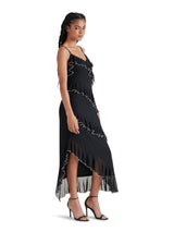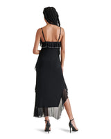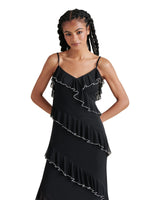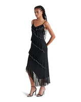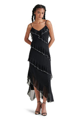 aida dress cascading asymmetric ruffles romance this enchanting midi dress designed with slender adjustable straps - perfect for a date night!