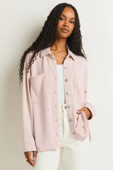 let us introduce you to the All Day Knit Jacket in beautiful rose color! soft and comfy, this oversized button front shirt jacket can be worn open or buttoned for a versatile layer you'll want to live in.