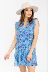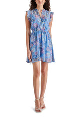 we are loving the bold + beautiful vibes this new arrival from steve madden! its vibrant floral print and colorful design are sure to catch attention. the short flutter sleeves and v-neck add a playful touch to this mini dress. stand out from the crowd with this fun and flirty piece!