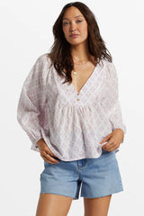 Experience ultimate comfort and style with Billabong's Ambers Relaxed Long Sleeve Shirt. Made from soft and breathable cotton gauze that perfectly drapes with light gathers, this printed top features a V-neck and flowy blouson sleeves.