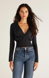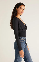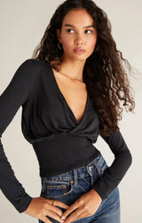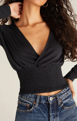 Got a party to go to or a night out planned? You'll love the flirty and feminine Eliana Smocked Long Sleeve Top to elevate your look, with details like smocking and a crossover v-neck. Made using our signature Modal Spandex fabric, this chic top hits at the top of the waistband and bloussants over. Pair it with a high rise style and you'll definitely turn some heads!