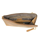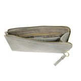 Karina combines sleek styling with uber-organization in a beautiful antique look vegan leather! The ultimate in versatility, this bag can be worn as a crossbody, carried as a clutch or as a wristlet. The included bonus wallet with credit card slots, ID window, zippered change pocket and billfold will keep your organized on the go and can be carried separately.