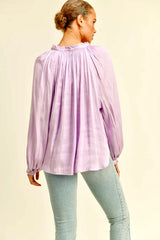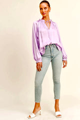 The Kendy Blouse is a silky top in a flattering lilac color, that's perfect for Spring. Pair it with your favorite jeans for an easy throw on style.