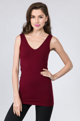 Our versatile seamless tank gives you two looks in one with the right amount of stretch. This style can be worn with either the V-neck or Scoop neck in the front, with thicker straps for extra coverage. Everyone's favorite reversible tank is essential for every collection. Adored by all, try it in our new fall/winter colors!