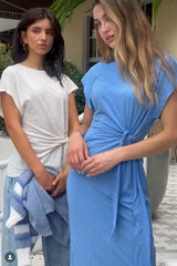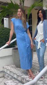 The Jolene Dress is a modern classic that blends style and comfort effortlessly. Featuring cap sleeves and a flattering midi length, this dress is designed to complement any body type. The tie belt detail adds a sophisticated touch, while the slit at the bottom and buttery-soft material make it both elegant and comfortable. Perfect for any occasion.