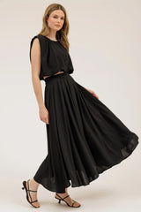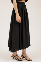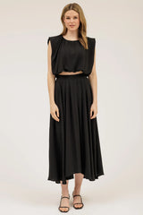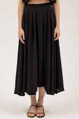 The elasticized back-waist ensures a comfortable fit while the box pleats and circle hem add movement and visual interest. Lined for coverage, this soft & drapey midi skirt is a versatile addition to your wardrobe.