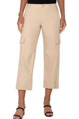 Liverpool mid-rise Utility Crop cargo pant is designed in a textured stretch woven for ultimate comfort and style. Featuring tonal stitching for a clean and chic look. These pants prove that utility can be versatile and elevated featuring cargo pockets and an adjustable tab hem. Throw on a tee and jacket for a weekend out on the town!