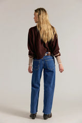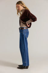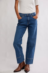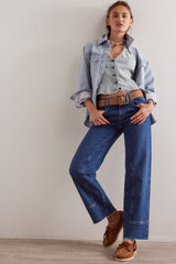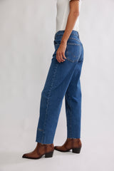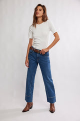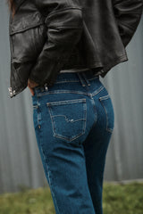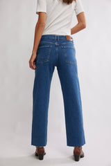 Fit: Mid-rise, true straight silhouette with semi-rigid denim