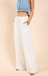 Sway and slay all day in our Sugarloaf Wide Leg Linen Pants. Flowy and flattering, these pants feature an elastic waist for maximum comfort. Perfect for a laid-back yet stylish look, the linen blend creates a breezy feel. Wear them and feel like a true fashionista (without sacrificing comfort)!