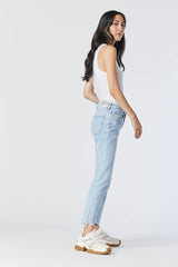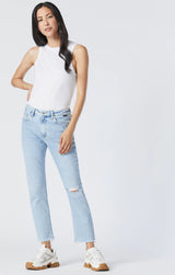 Our newest straight-leg jean has a comfortable high rise that sits above the waist and an equally relaxed leg that tapers slightly at the ankle.