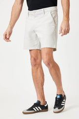 A refreshing off white short in buttery soft twill, this sophisticated style seamlessly dresses up or down for any warm-weather occasion. These have a slimming silhouette and shorter inseam for a modern closet staple.