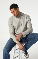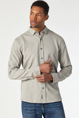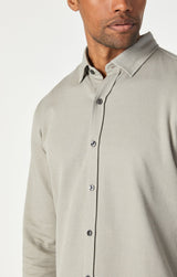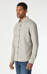 This warm grey shirt is a must-have for any occasion. Made with smooth viscose, the subtle waffle knit adds texture and dimension to this sleek style. With a slim and structured fit, here's the perfect button-down for dressed up occasions. The tailored fit creates an effortlessly put-together look to make a lasting impression.