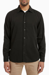 Dark and versatile, this shirt made of sustainably produced lyocell and soft cotton sports an inky-black wash and a stretchy fit that looks great untucked.