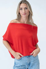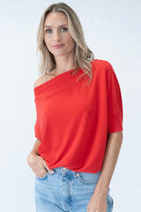 It can be worn three ways - on both shoulders for more of a cowl neck, off both shoulders, or off either shoulder!  It has thumbholes and is our most versatile top, the name says it all!