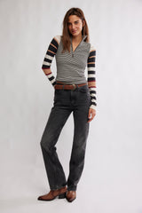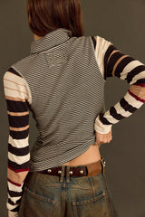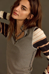 we love stripes!!! Add the perfect elevated staple piece to your wardrobe with this top from we the free collection, featuring a classic quarter-zip design, a lightweight cotton-blend fabrication, and a flattering, fitted silhouette.