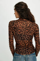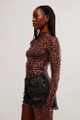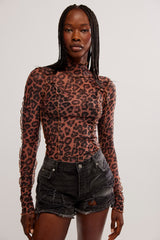 Printed to perfection in a goes-with-anything design, this mesh top features a mock neckline, defined seaming, and semi-sheer fabrication for added dimension.