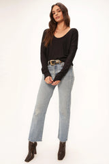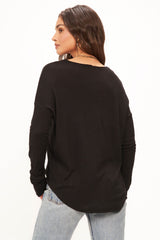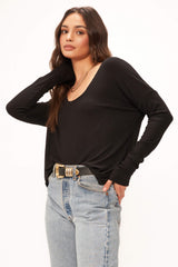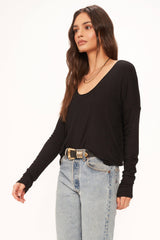 The Charlotte Relaxed Scoop Neck Rib Long Sleeve is your new favorite basic. Featuring a flattering scoop neckline with raw edges, drop shoulders, shirttail hemline, and an overall relaxed fit, it's both easy to style and comfortable. Finish off that silhouette with a soft, micro rib fabric, and you have a tee you'll always find an excuse to wear.