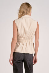 elevate your look with this new arrival from elan, designed to flatter with a feminine update to the classic vest silhouette. its sleeveless cut and button-front closure keeps the look sleek and chic, while the cinched waist adds a playful touch that highlights your curves. perfect for layering or wearing solo, this vest brings effortless style with a fun, flirty edge.