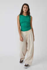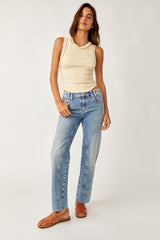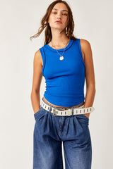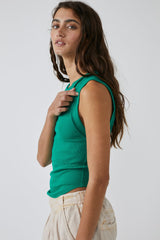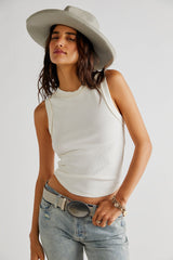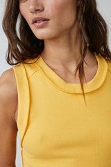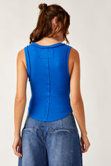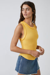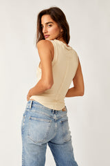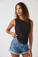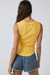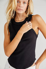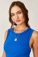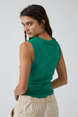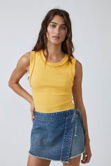 The ideal tank-inspired top, this sleeveless tee is featured in an effortless, goes-with-anything design with rounded bottom hem and exposed seaming for a true lived-in look.
