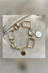 with sparkling champagne crystals and hammered gold links -- this is a beautiful, unique piece. The links are hand forged and hammered into wavy rectangle connectors with 14 mm square crystals in champagne.