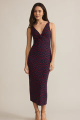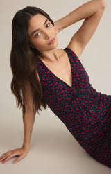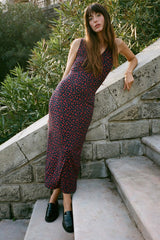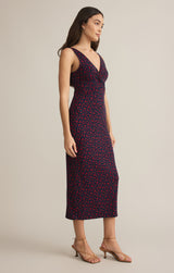 This sleeveless midi dress is the epitome of effortless elegance. Crafted from a luxurious blend of rayon and spandex, it drapes beautifully against the skin while offering exceptional comfort. The V-neckline adds a touch of sophistication, while the midi length creates a flattering and feminine silhouette. The sweet floral print on stretch jersey lends a touch of vintage charm, making this dress a timeless piece that can be dressed up or down.