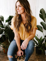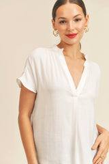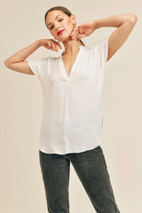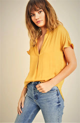 v-neck silky fabric short sleeve stand up collar blouse "esme top" is perfect from business to casual - it's a beautiful transitional piece for your wardrobe!