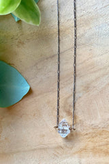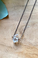 What is more classic than a single diamond pendant? Nothing! This beautiful necklace embraces the ultimate simple accessory. A single Herkimer diamond hangs from a 16-18 inch adjustable necklace. Each necklace is unique, as gemstones vary in size, shape and color.