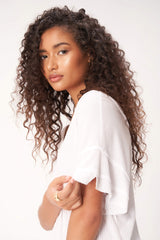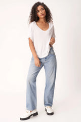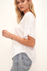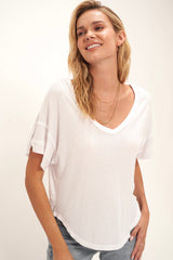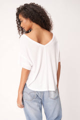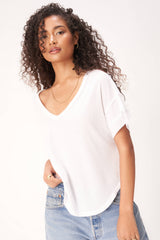 The Fiona Easy Fit Double V Tee features a soft, pointelle rib fabric that drapes beautifully in this easy-fit silhouette. Little details like a flattering v neckline, layered fabric details, and raw edges make this an easy add-to-cart.