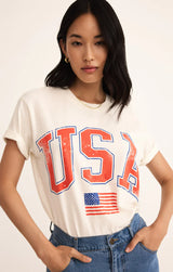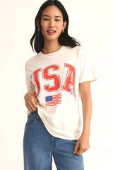 A classic with a patriotic twist, this easygoing tee features a vintage-inspired "USA" collegiate screen print and an American flag graphic. Made from soft cotton jersey with a perfectly relaxed fit, it’s the one you’ll keep reaching for all year long.