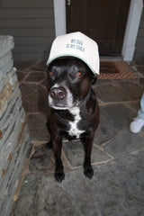 I can't afford to be here:  Two-toned neutral and forest green snapback hat