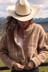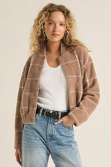 new snap front bomber jacket combines the cozy feel of a heavyweight sweater knit with the sleek look of tailored sleeves and a standing collar, and comes in this modern plaid. Featuring functional pockets and a timeless varsity style, it’s the ideal blend of comfort and classic cool.