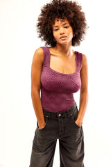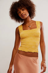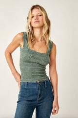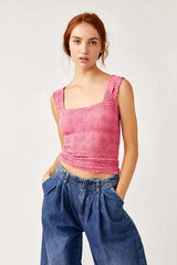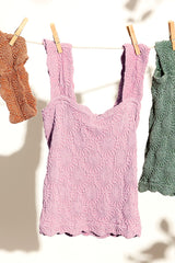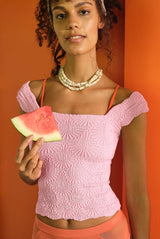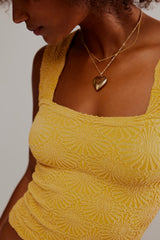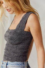 So sweet cami featured in a cropped, square-neck silhouette and jacquard floral design with statement lettuce-edge hemline.