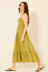 This stunning breezy, strappy maxi features a smocked top with ruffle edges, providing a flattering and comfortable fit. You'll look and feel effortlessly stylish in the Lyon dress.