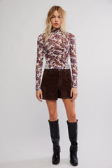 Your new favorite layering top has arrived–this long sleeve is featured in a statement printed lace with a turtle neckline and delicate keyhole detail.