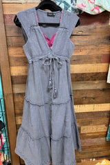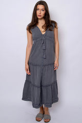 Introducing the MacBeth Tiered Dress in coal - the perfect dress for a summer soiree. Its romantic, gauzy fabric will keep you cool and stylish, while the plunging neckline adds a touch of allure. An adorable addition to any wardrobe.