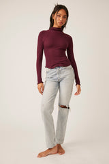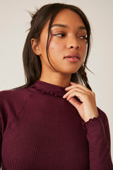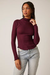 A wear-everywhere wardrobe staple, this timeless long-sleeve is featured in a thermal fabrication and slim silhouette with a high neckline and feminine lettuce trim.