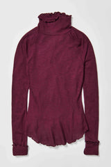 Features: Soft thermal fabrication, high neckline, fitted long-sleeves, lettuce trim, seam detail throughout