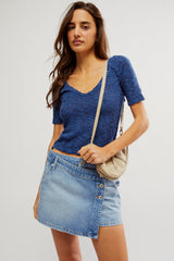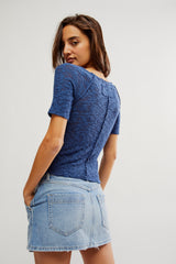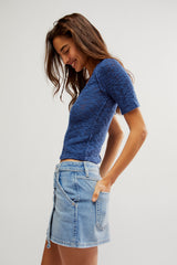 Your new favorite textured tee from we the free collection, featured in a soft fabrication and slim-fitting silhouette with a scoop neckline and raw trim.