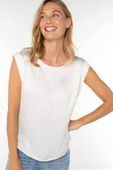 Where polish meets ease. This sleeveless top pairs a woven front for a clean, structured look with a soft knit back that moves with you. The result? A versatile piece that balances texture and comfort—effortlessly refined from day to night.