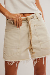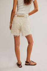 Our top-rated Moxie shorts — the perfect white cut-off silhouette.