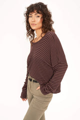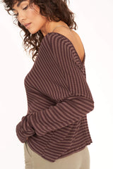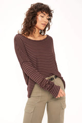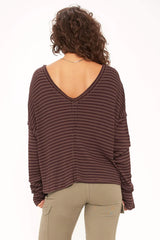 The Nelly Low Back Striped Rib Long Sleeve proves that staple styles don't have to be boring. The striped rib fabric is lightweight and drapes in all the right places thanks to the overall slouchy, relaxed fit and drop shoulders. The scoop back silhouette with center seam detail adds an unexpected touch, making this super add-to-cart worthy.