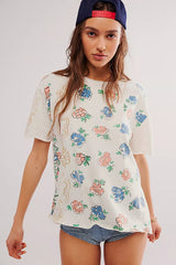 Your new favorite tee from our We the free collection, this soft short-sleeve is featured in an oversized fit with a subtle scoop neckline and printed detail throughout.