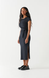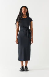 The Nora dress is a short sleeve midi length dress with a knot detail at the waist. Flattering and comfortable, what more could a girl ask for? Pair her with a denim jacket, white sneakers and chunky jewelry and you've got a look.
