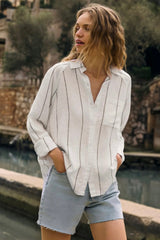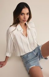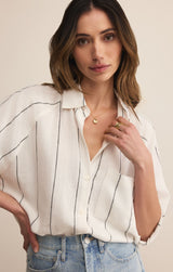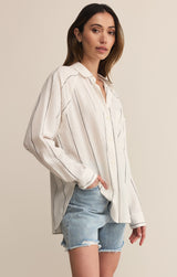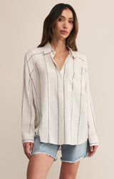 You'll love the easy, breezy comfort of this classic stripe button-up. Featuring that soft, drapey feel you look for, you can wear it alone or as a lightweight layer for an effortless look, no matter where your day takes you.