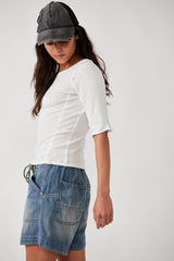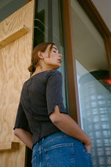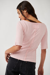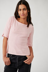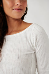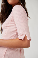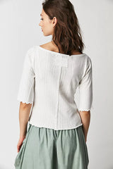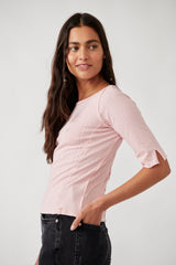 Taking the classic tee to the next level, this classic version is featured in a fitted, ¾ length sleeve silhouette with textured striping and exposed seaming for added dimension. designed to take your tops collection up a notch, this forever timeless version is sure to be our go-to for many years to come!