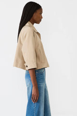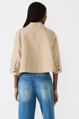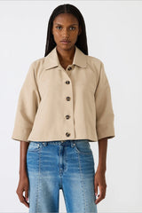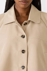 a modern staple for your outerwear rotation. This tan, cropped trench offers an oversized fit for an effortlessly chic look. It provides the perfect light layer to transition through seasons, adding instant sophistication and versatility to any outfit.