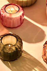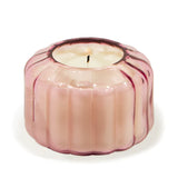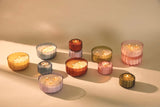 The Ripple transparent ribbed glass 4.5 oz Candle is designed to elevate tablescapes. ripple glass candle collection adds a glowing pop of color to any beautiful space. Bring a vintage touch to your next dinner party with the subtle and finely ribbed colored glass vessels.