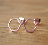 Geometric simplistically is this design's middle name. These cute little gold plated hexagon earrings are a safe bet when packing for a long trip or when rushing out the door. You can guarantee that they will go with almost everything you own and will never be too much. They sit prettily on hypoallergenic posts for comfort and security. Add a little geometric flair to your favorite work or play outfit!