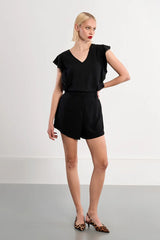 wide ruffled bands on each side of the top, covering the shoulders
